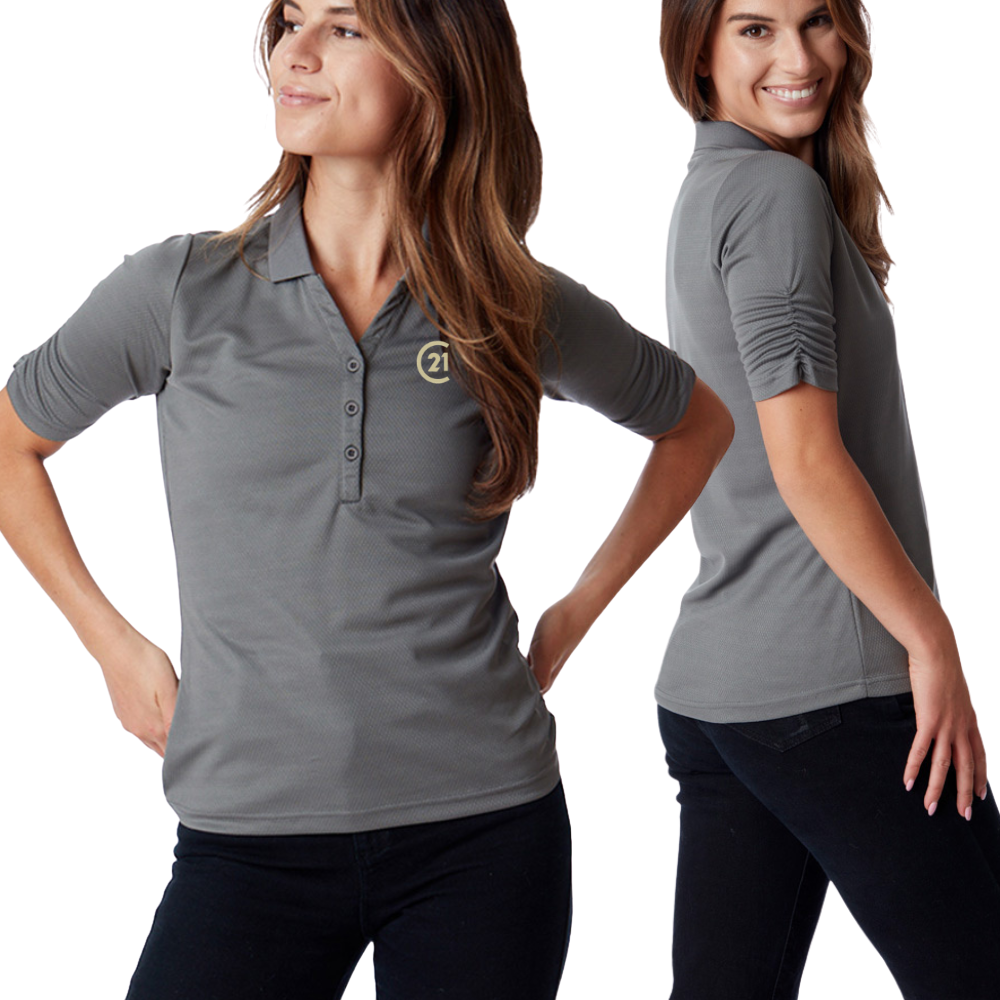 {"id":9430282731737,"title":"Ladies Ruched Sleeve Polo – Grey | NEW","handle":"ruched-sleeve-polo-steel","description":"\u003cp data-start=\"168\" data-end=\"532\"\u003e\u003cstrong data-start=\"168\" data-end=\"229\"\u003eDistinctive ruched sleeve detailing sets this polo apart.\u003c\/strong\u003e\u003cbr data-start=\"229\" data-end=\"232\"\u003eDesigned to flatter and elevate. Ruche refined three-button placket polo in flattering grey brings a fresh, feminine edge to corporate wear. Cut in a contemporary fit, it is crafted from moisture-wicking 100% polyester and offers UPF 30 sun protection—delivering comfort, performance, and confidence throughout the day.\u003c\/p\u003e\n\u003cp data-start=\"534\" data-end=\"894\"\u003eA subtle honeycomb textured weave adds depth and sophistication. The polished silhouette differentiates this polo from standard corporate styles. The result is a professional look that feels current, considered, fashion forward and unmistakably CENTURY 21.\u003c\/p\u003e\n\u003cp data-start=\"534\" data-end=\"894\"\u003eBranding on the front and the back of the polo ensures maximum brand recognition.\u003c\/p\u003e\n\u003cul\u003e\n\u003cli data-start=\"534\" data-end=\"894\"\u003eC21\u003cstrong data-start=\"1381\" data-end=\"1389\"\u003e®\u003c\/strong\u003e Left Chest Embroidery\u003c\/li\u003e\n\u003cli data-start=\"534\" data-end=\"894\"\u003eCENTURY 21® Embroidery on the back of the polo underneath the collar.\u003c\/li\u003e\n\u003c\/ul\u003e","published_at":"2026-01-30T17:31:26-08:00","created_at":"2026-01-30T17:15:05-08:00","vendor":"SANMAR L569","type":"Polo Shirt","tags":["BLACK POLO","envision","womens polo"],"price":5600,"price_min":5600,"price_max":5600,"available":true,"price_varies":false,"compare_at_price":null,"compare_at_price_min":0,"compare_at_price_max":0,"compare_at_price_varies":false,"variants":[{"id":47749404917977,"title":"XS","option1":"XS","option2":null,"option3":null,"sku":"US7816C21","requires_shipping":true,"taxable":false,"featured_image":null,"available":true,"name":"Ladies Ruched Sleeve Polo – Grey | NEW - XS","public_title":"XS","options":["XS"],"price":5600,"weight":454,"compare_at_price":null,"inventory_quantity":1,"inventory_management":"shopify","inventory_policy":"deny","barcode":"","requires_selling_plan":false,"selling_plan_allocations":[]},{"id":47749404950745,"title":"S","option1":"S","option2":null,"option3":null,"sku":"US7817C21","requires_shipping":true,"taxable":false,"featured_image":null,"available":true,"name":"Ladies Ruched Sleeve Polo – Grey | NEW - S","public_title":"S","options":["S"],"price":5600,"weight":454,"compare_at_price":null,"inventory_quantity":4,"inventory_management":"shopify","inventory_policy":"deny","barcode":null,"requires_selling_plan":false,"selling_plan_allocations":[]},{"id":47749404983513,"title":"M","option1":"M","option2":null,"option3":null,"sku":"US7818C21","requires_shipping":true,"taxable":false,"featured_image":null,"available":true,"name":"Ladies Ruched Sleeve Polo – Grey | NEW - M","public_title":"M","options":["M"],"price":5600,"weight":454,"compare_at_price":null,"inventory_quantity":10,"inventory_management":"shopify","inventory_policy":"deny","barcode":null,"requires_selling_plan":false,"selling_plan_allocations":[]},{"id":47749405016281,"title":"L","option1":"L","option2":null,"option3":null,"sku":"US7819C21","requires_shipping":true,"taxable":false,"featured_image":null,"available":true,"name":"Ladies Ruched Sleeve Polo – Grey | NEW - L","public_title":"L","options":["L"],"price":5600,"weight":454,"compare_at_price":null,"inventory_quantity":10,"inventory_management":"shopify","inventory_policy":"deny","barcode":null,"requires_selling_plan":false,"selling_plan_allocations":[]},{"id":47749405049049,"title":"XL","option1":"XL","option2":null,"option3":null,"sku":"US7820C21","requires_shipping":true,"taxable":false,"featured_image":null,"available":true,"name":"Ladies Ruched Sleeve Polo – Grey | NEW - XL","public_title":"XL","options":["XL"],"price":5600,"weight":454,"compare_at_price":null,"inventory_quantity":4,"inventory_management":"shopify","inventory_policy":"deny","barcode":null,"requires_selling_plan":false,"selling_plan_allocations":[]},{"id":47749405081817,"title":"2XL","option1":"2XL","option2":null,"option3":null,"sku":"US7821C21","requires_shipping":true,"taxable":false,"featured_image":null,"available":false,"name":"Ladies Ruched Sleeve Polo – Grey | NEW - 2XL","public_title":"2XL","options":["2XL"],"price":5600,"weight":454,"compare_at_price":null,"inventory_quantity":0,"inventory_management":"shopify","inventory_policy":"deny","barcode":null,"requires_selling_plan":false,"selling_plan_allocations":[]}],"images":["\/\/century21promoshopusa.com\/cdn\/shop\/files\/Untitled_design_-_2026-01-31T122736.659.png?v=1769822877","\/\/century21promoshopusa.com\/cdn\/shop\/files\/Untitled_design_-_2026-01-31T122554.796.png?v=1769822877","\/\/century21promoshopusa.com\/cdn\/shop\/files\/Untitleddesign-2026-01-31T122021.700.png?v=1769822877","\/\/century21promoshopusa.com\/cdn\/shop\/files\/4902-Monterey-Front-Grey-Model-2_1.jpg?v=1769822877","\/\/century21promoshopusa.com\/cdn\/shop\/files\/4902-Monterey-Front-Grey-Detail_1.jpg?v=1769822877","\/\/century21promoshopusa.com\/cdn\/shop\/files\/Untitled_design_-_2026-01-31T175940.397_9264c4e2-3f3e-4e47-bc28-5b28eba9385e.png?v=1769842845"],"featured_image":"\/\/century21promoshopusa.com\/cdn\/shop\/files\/Untitled_design_-_2026-01-31T122736.659.png?v=1769822877","options":["Size"],"media":[{"alt":null,"id":38548691976409,"position":1,"preview_image":{"aspect_ratio":1.0,"height":1000,"width":1000,"src":"\/\/century21promoshopusa.com\/cdn\/shop\/files\/Untitled_design_-_2026-01-31T122736.659.png?v=1769822877"},"aspect_ratio":1.0,"height":1000,"media_type":"image","src":"\/\/century21promoshopusa.com\/cdn\/shop\/files\/Untitled_design_-_2026-01-31T122736.659.png?v=1769822877","width":1000},{"alt":null,"id":3854868984